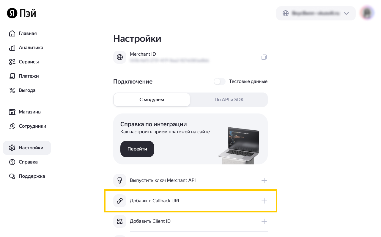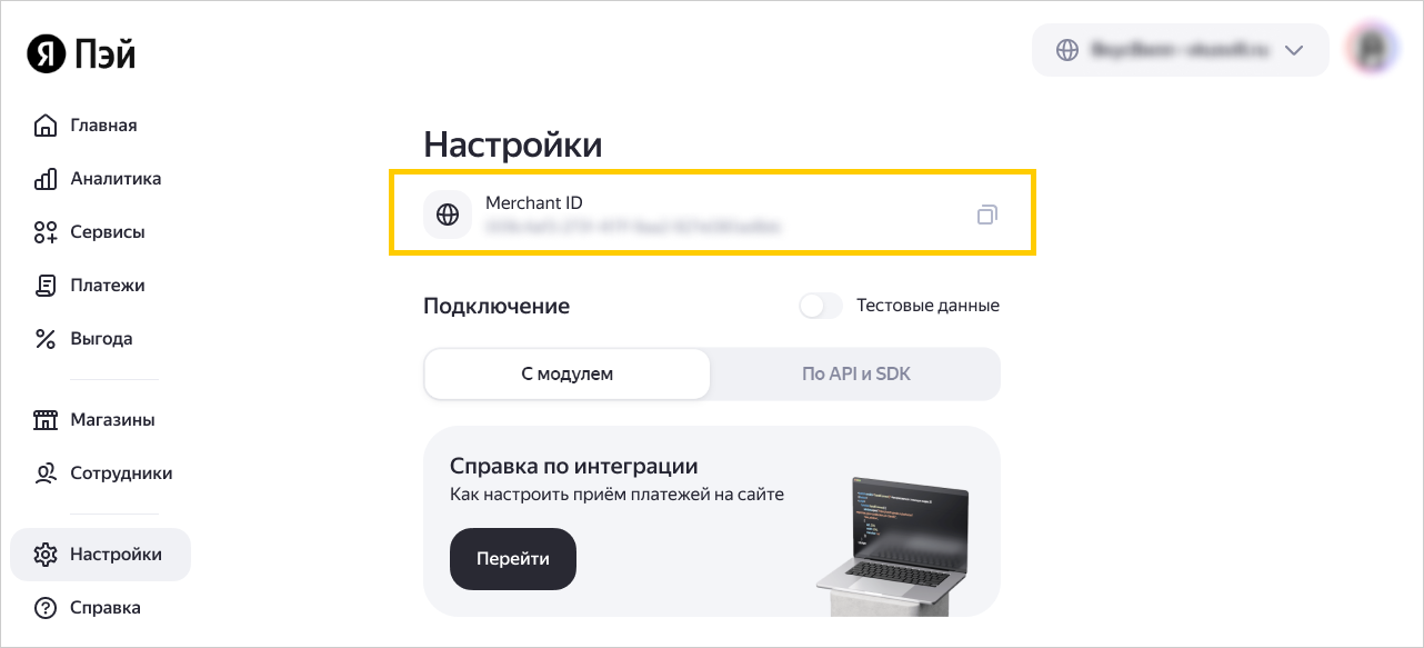 Укажите Merchant ID из личного кабинета Яндекс Пэй.