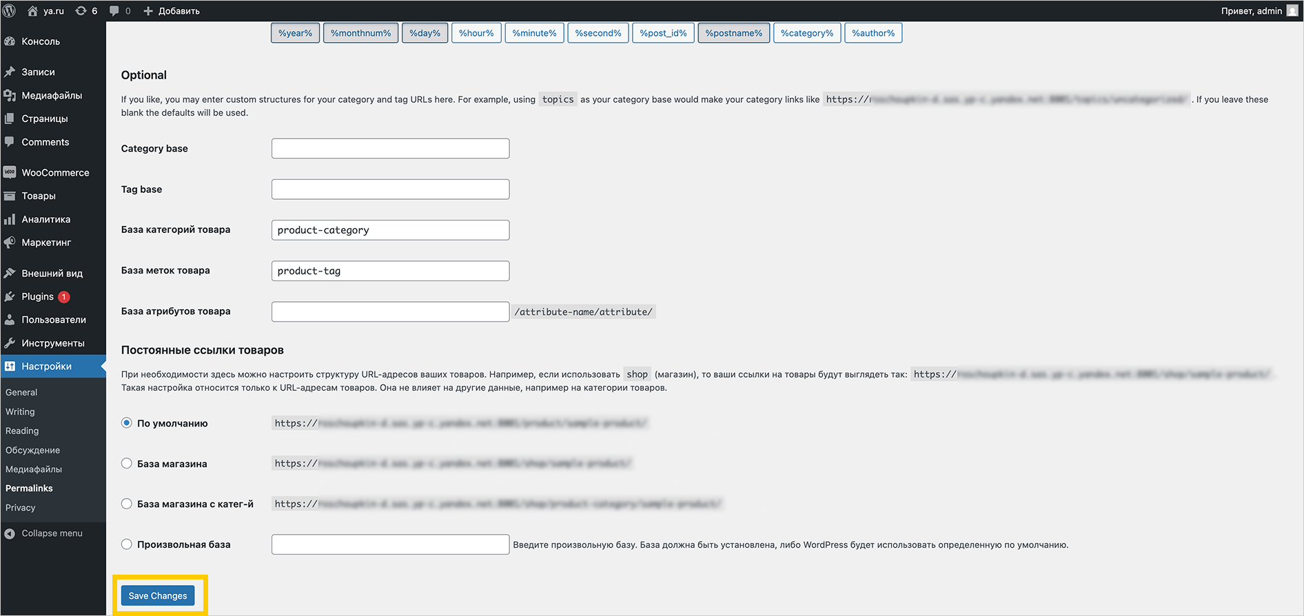 Прокрутите страницу с настройками вниз и сохраните изменения с помощью кнопки Save Changes.