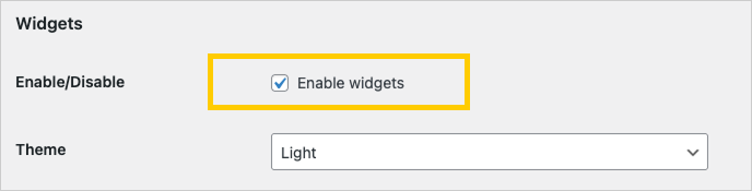 В административной панели WordPress перейдите в настройки плагина и в разделе Widgets / Виджеты активируйте опцию Enable widgets (Включить виджеты).