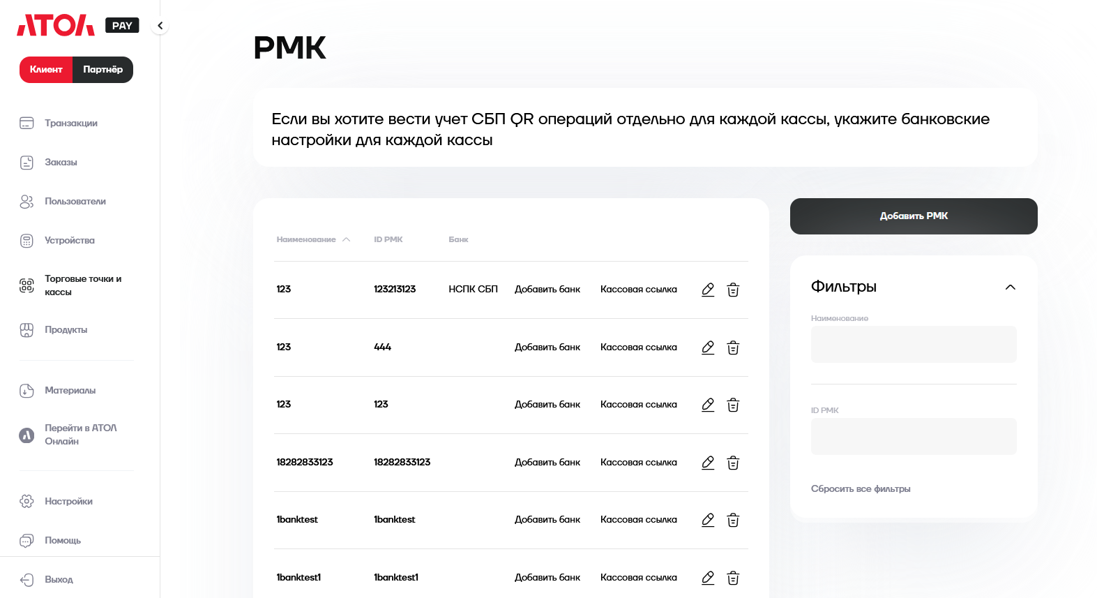 В строке с нужным РМК нажмите Кассовая ссылка.