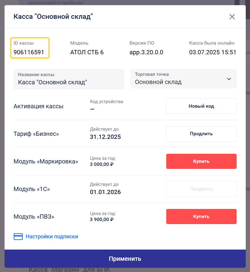 Если вы используете кассовое ПО Frontol или xPOS, в поле ID РМК укажите уникальный идентификатор ПО.