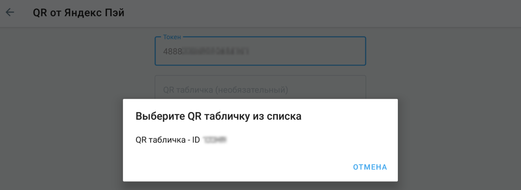 Если в торговой точке установлено несколько касс, в поле QR табличка выберите из списка табличку с QR-кодом, которую хотите подключить к кассе.