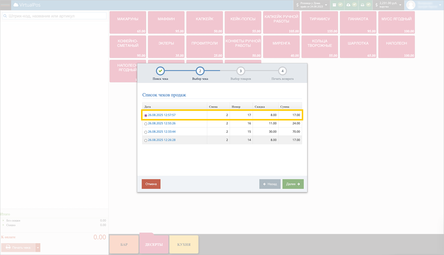 Выберите нужный чек и нажмите Далее.